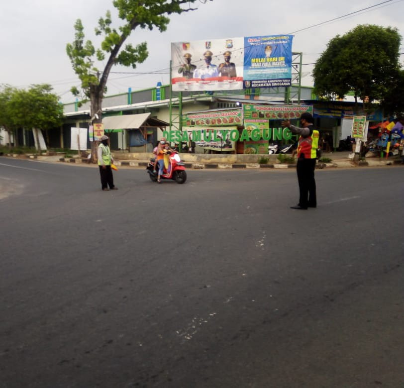 Seperti yang dilakukan personil Polsek Singgahan Polres Tuban melakukan pengaturan lalu lintas dipagi hari dengan membantu menyeberangkan warga di simpang empat anjlok turut Desa Mulyoagung Kecamatan Singgahan Kabupaten Tuban. Rabu pagi (2/6/21)