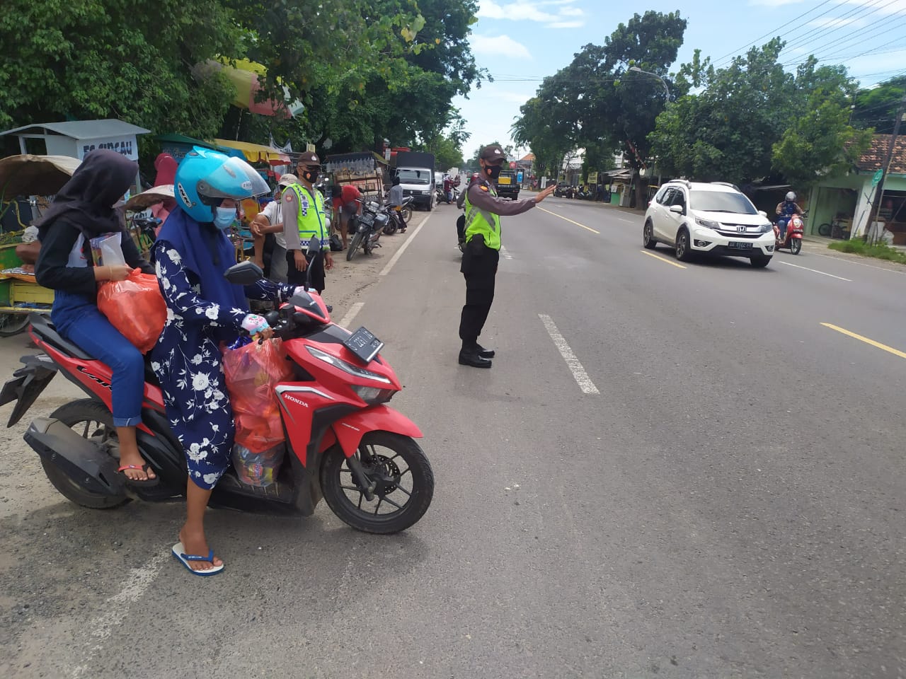 personil anggota polsek Jenu dibawah arahan Kapolsek jenu AKP Rukimin S.H M.H melaksanakan pengaturan lalulintas di depan pasar samudera Ds.beji kec.jenu yang sarat padat aktivitas masyarakat.