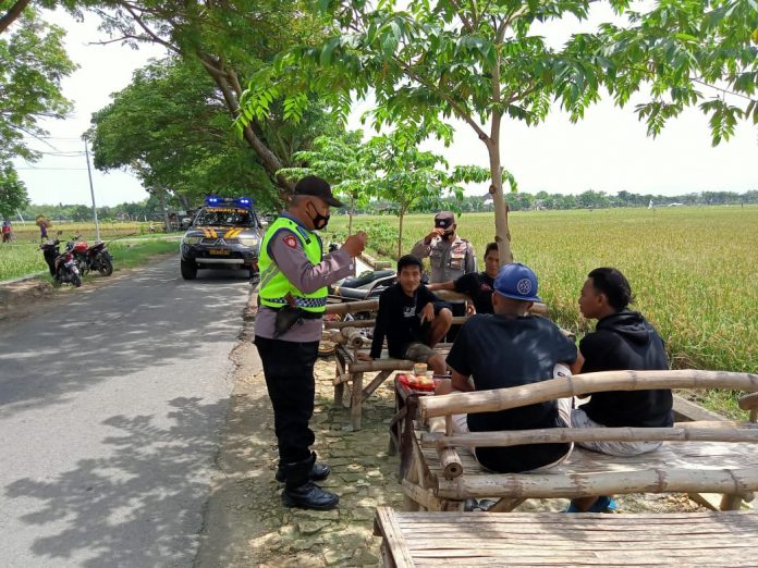 wacananews.com-polrestubanpoldajatim Unit Sabhara Polsek Rengel Polres Tuban menggelar patroli dialogis dalam rangka pendisiplinan warga terhadap protokol kesehatan. Kegiatan yang dilakukan kali ini menyasar sejumlah warung kopi maupun tempat yang biasa digunakan para pemuda dan masyarakat untuk nongkrong. Selasa, (06/04/2021).