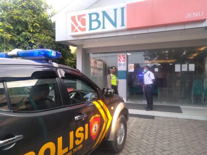 wacananews.com – Polsek jenu Polres Tuban patroli di perbankan wilayah jenu, mengingat hari libur perkantoran (Sabtu 24 April 2021) tidak lupa mengingatkan kepada pihak keamanan perbankan untuk setip min 1 jam sekali berganti mengecek tempat tempat yg tidak terkena area CCTV sehingga meminimalisir terjadinya tindakan kejahatan.
