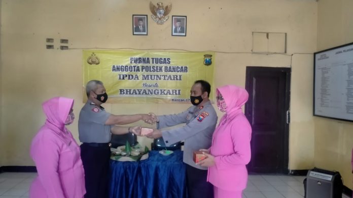 wacananews.com-polrestubanpoldajatim Polsek Bancar Polres Tuban Melaksanakan kegiatan tasyakuran dalam rangka Purna Tugas Ipda Muntari (58) Tahun mengabdi dalam tugas kepolisian Negara Republik Indonesia bertempat di gedung Polsek Bancar Polres Tuban.