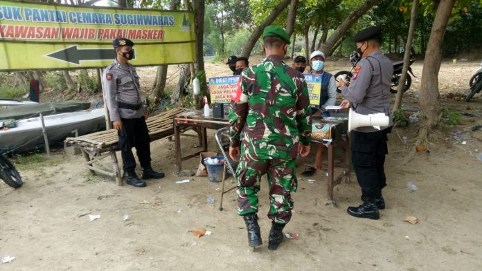 wacananews.com – PolresTubanJatim Giat yustisi gabungan polsek jenu dengan rekan Koramil Jenu seperti pada hari Senin 12 April 2021, menghimbau serta mengedukasi pengunjung tempat wisata mengajak agar mentaati protokol kesehatan dalam keseharian baik di dalam lingkungan keluarga maupun saat di luar rumah seperti saat ini, menjahui kerumunan juga di wajibkan mengingat penyebaran virus covid 19 belum berakhir.
