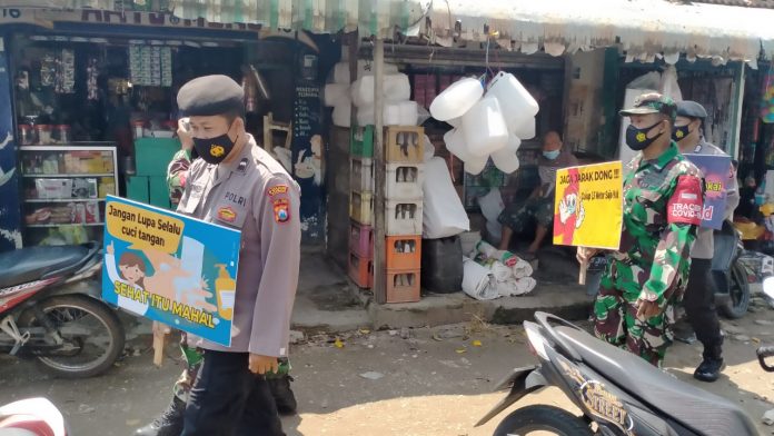 Pada kesempatan siang itu di lakukan oleh anggota Polsek Bancar bersama Koramil Bancar Melaksanakan giat YUSTISI Pendisiplinan Protokol Kesehatan dengan sasaran pengunjung Pasar Layur Ds Banjarjo kecamatan Bancar Tuban.