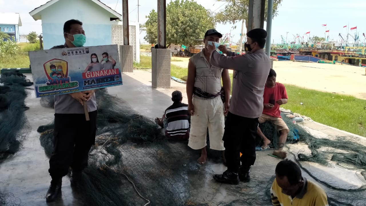Pada kesempatan siang itu dilakukan oleh Polsek Bancar dengan sasaran para nelayan yang sedang memperbaiki jaring di pelabuhan perikanan pantai bulu desa bulu Meduro, pada saat melaksanakan kegiatan yustisi petugas kepolisian mengajak masyarakat nelayan untuk selalu mematuhi Protokol Kesehatan 5M.