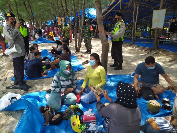 wacananews.com-polrestubanpoldajatim Polsek jenu polres Tuban giat yustisi gabungan dengan rekan Koramil Jenu seperti pada hari Kamis 11/03/2021, menghimbau serta mengedukasi pengunjung tempat wisata mengajak agar mentaati protokol kesehatan dalam keseharian baik di dalam lingkungan keluarga maupun saat di luar rumah seperti saat ini, menjahui kerumunan juga di wajibkan mengingat penyebaran virus covid 19 belum berakhir. Pengunjung juga di harapkan peduli dan peka dengan situasi keamanan (penempatan barang bawaan dan anak anak yang bermain di laut) serta untuk selalu mentaati protokol kesehatan.