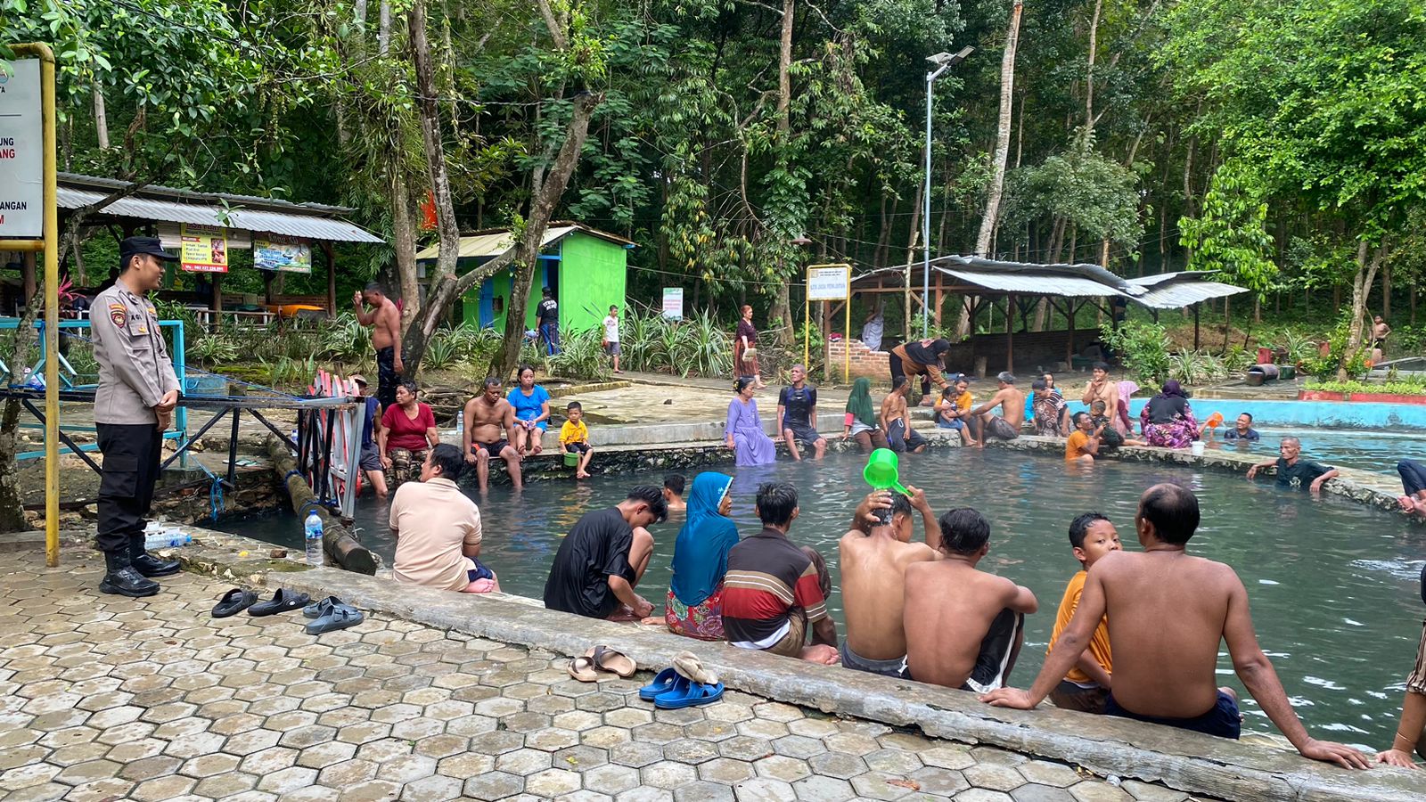 penjaga dan pengunjung obyek wisata pemandian air hangat (nganget) sekaligus menyampaikan pesan kamtibmas.