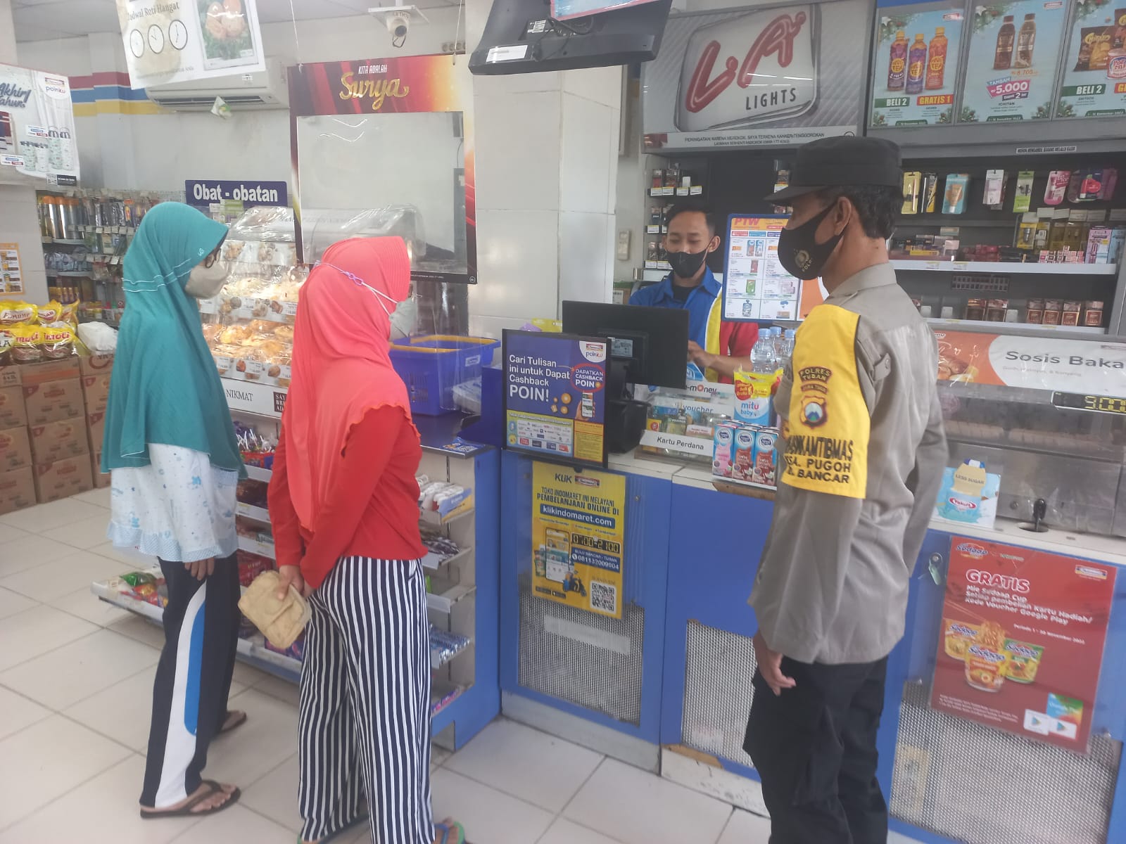 Yang mana pada kesempatan siang itu dilakukan oleh anggota  Bhabinkamtibmas Polsek Bancar Aiptu Tutug  memberikan himbauan warga di sekitar pertokoan Indomaret terkait kepatuhan masyarakat untuk menjalankan protokol kesehatan 5M  dimana saja dan kapan saja, Alhamdulillah masyarakat sadar akan pentingnya memakai masker saat beraktivitas diluar rumah.