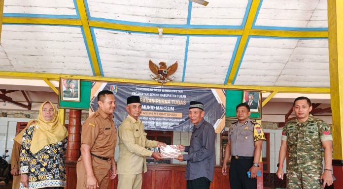 Petugas Polmas Polsek Senori Polres Tuban Polda Jatim Menghadiri Kegiatan Pelepasan Purna Tugas Perangkat Desa Wanglu Wetan