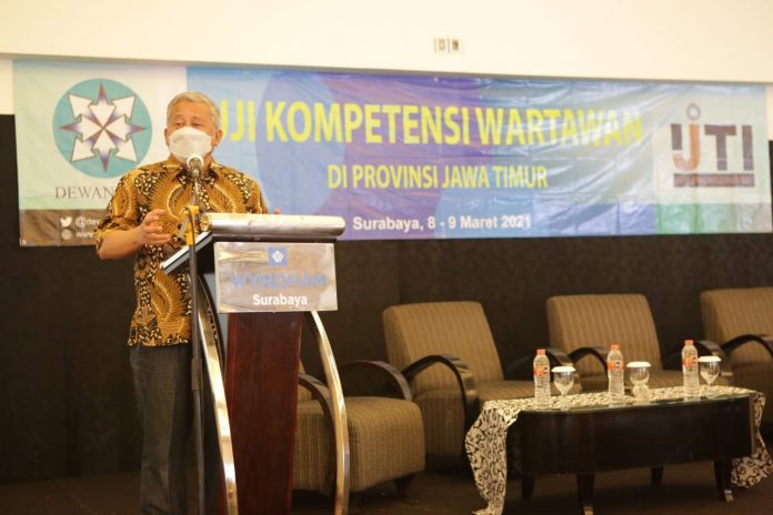 “Peran media massa itu sangat penting untuk mencerdaskan bangsa. Apalagi saat ini masih di massa Pandemi Covid-19,” jelas Prof. M, Nuh, selaku Ketua Dewan Pers, disela sela memberikan pengarahan di depan peserta UKW, Senin (8/3/2021) siang.
