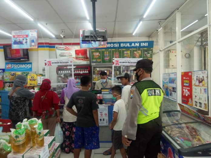 Disamping itu, petugas mengingatkan kepada warga di swalayan tersebut supaya tidak berkerumun dan tetap memperhatikan protokol kesehatan demi menghindarkan serta memutus mata rantai Covid-19 saat berbelanja.