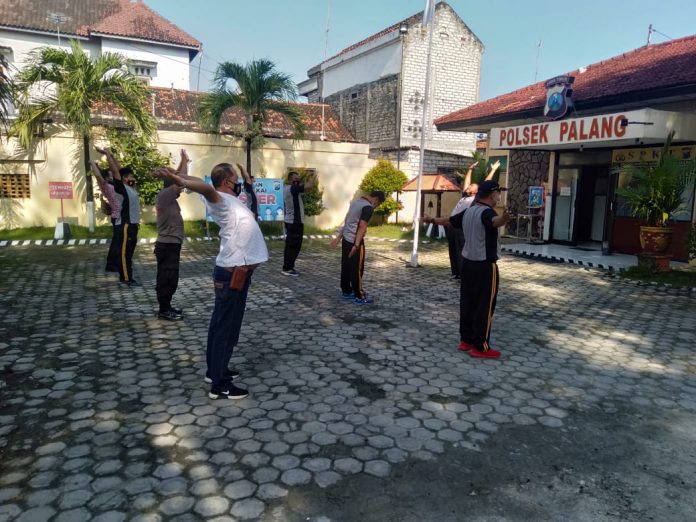 wacananews.com-polrestubanpoldajatim Polsek Palang Polres Tuban, secara rutin melaksanakan kegiatan Olahraga pagi dan membersihkan mako, setiap hari Jum’at yang dipimpin langsung oleh bapak Kapolsek Palang AKP SIMON TRIYONO, yang bertujuan menjaga kebersihan kantor Polsek Palang serta menjaga kesehatan para anggota Polsek Palang.