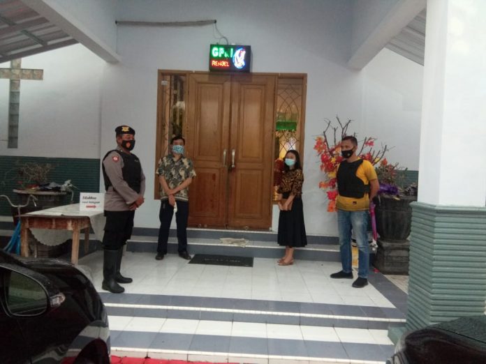 wacananews.com-polrestubanpoldajatim Polsek Rengel Polres Tuban melaksanakan pengamanan ibadah kebaktian rutin Umat Kristen di Gereja Pantekosta di Indonesia (GPDI) Rengel Kabupaten Tuban. Minggu Sore, (28/3/2021).