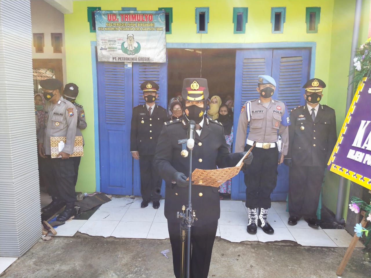 Upacara persemayaman jenazah Almarhum Aiptu Suryanto dilaksanakan di rumah duka dusun Bawi desa Hargoretno kecamatan Kerek, Upacara di pimpin oleh Kabag Sumda Kompol Mardiyah dan dihadiri oleh beberapa pejabat utama Polres Tuban, Kapolsek Tambakboyo serta seluruh anggota Polsek Tambakboyo, Senin (01/03/2021) siang.