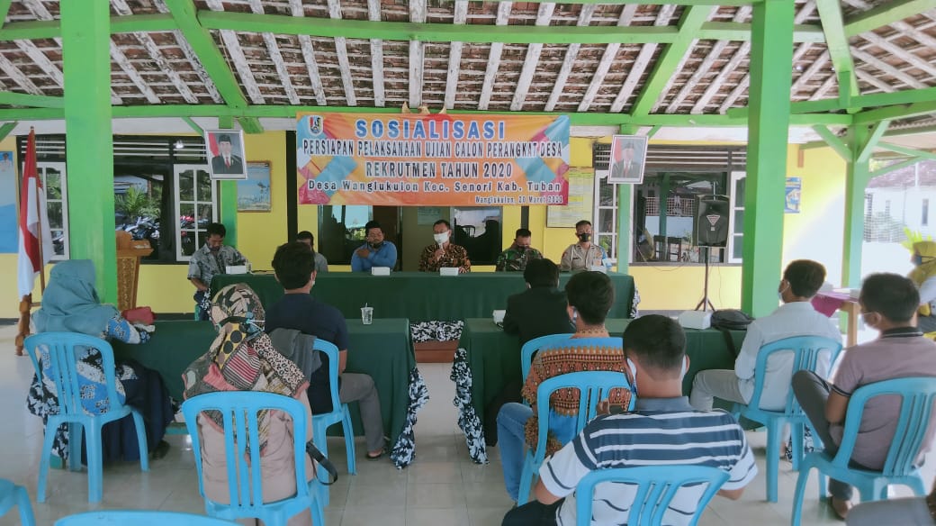 Dimana diketahui bahwa Pemerintah Desa Wanglu Kulon bekerjasama dengan Pemerintah Kecamatan Senori Kabupaten Tuban melaksanakan sosialisasi persiapan ujian Calon Perangkat Desa yang berlangsung di Balai Desa setempat.