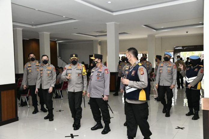 wacananews.com – BANDUNG – Kapolri Jenderal Polisi Listyo Sigit Prabowo meninjau langsung pelaksanaan vaksinasi Covid-19 tahap II jajaran Polda Jawa Barat (Jabar). Vaksinasi itu diberikan kepada 36.292 jajaran Polda Jawa Barat yang terdiri dari, anggota Polri, PNS, pegawai harian lepas Polri dan awak media.