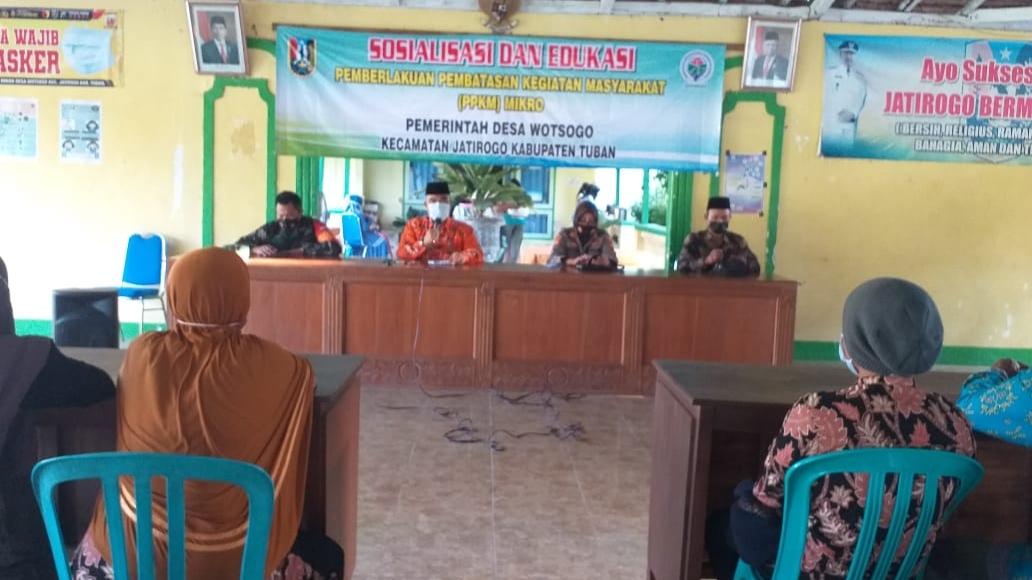 wacananews.com – PolresTubanPoldaJatim Dalam upaya penanggulangan wabah covid-19, bersama Forkopimka Kapolsek Jatirogo AKP Elis Suendayati, S.H., menghadiri sosialisasi dan edukasi PPKM Mikro bertempat di Balai Desa Wotsogo Kec. Jatirogo Kab. Tuban. Minggu sore, (9/5/2021)