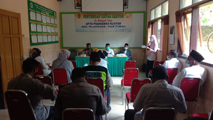 wacananews.com – PolresTubanPoldaJatim Polres Tuban – Puskesmas Klotok mengadakan acara pertemuan Lintas Sektor Triwulan 2 Bidang Kesehatan, Kapolsek Plumpang AKP Wahyu Dwi Waluyo, S.H. dan Bhabinkamtibmas Sewilayah kerja Puskesmas Klotok hadiri giat tersebut di aula puskesmas Klotok Kecamatan Plumpang Kabupaten Tuban. Kamis,(17/06/2021).
