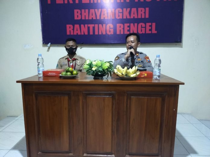 wacananews.com – PolresTubanJatim Kapolsek Rengel Polres Tuban IPTU Dean Tommy Rimbawan S.H. selaku Ka Mabi Saka Bhayangkara Polsek Rengel memberikan pengarahan kepada anggota Pramuka Saka Bhayangkara Polsek Rengel. Senin sore, (04/05/2021).