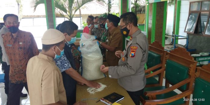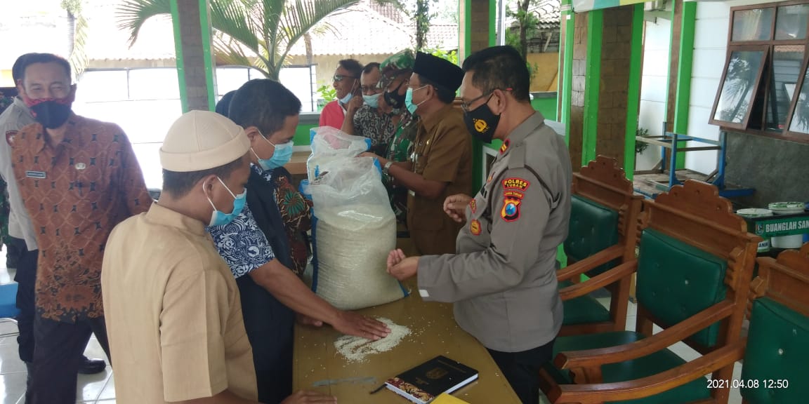 wacananews.com – PolresTubanJatim Kapolsek Senori Polres Tuban Polda Jawa Timur Iptu Suganda, S.H., bersama Forkopimcam Senori dan petugas dari Dinas Sosial Kab, Tuban wilayah Kecamatan Senori, melaksanakan pengecekan kualitas Beras untuk program bantuan BPNT yang dikirim oleh Suplier yang telah ditunjuk oleh PT. Bulog di Pendopo Kec, Senori, Kamis (8/4/2021).