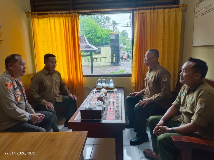 Senori – Dalam rangka mencegah terjadinya pembalakan liar (ilegal logging) dan kebakaran hutan dan lahan (Karhutla). Petugas dari Perum Perhutani Divisi Regional Jawa Timur KPH Jatirogo BKPH Bate, melaksanakan silatuhrahmi kepada Kapolsek Senori Polres Tuban di Mapolsek Senori, Selasa (27/1/2026).