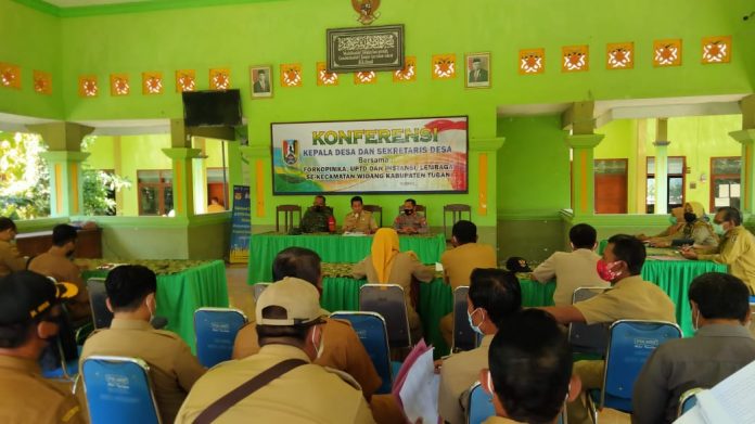 wacananews.com – PolresTubanJatim Desa Widang berkesempatan menjadi tuan rumah pada acara konferensi Kades dan Sekdes se- Kecamatan Widang pada Senin (03/05/2021). Acara rutin tiap bulan tersebut diadakan secara bergiliran di Desa se- Kecamatan Widang.Â
