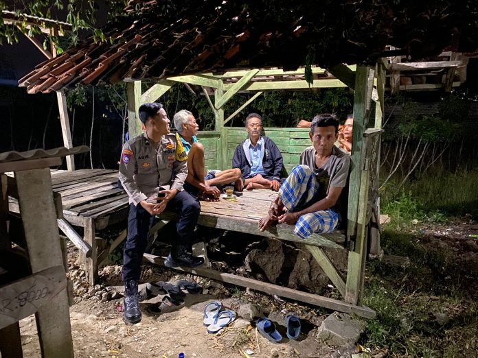 Dalam sambangnya, BRIPDA Agik (sapaam akrabnya) melaksanakan dialog dengan petugas ronda sekaligus menyampaikan pesan-pesan kamtibmas.