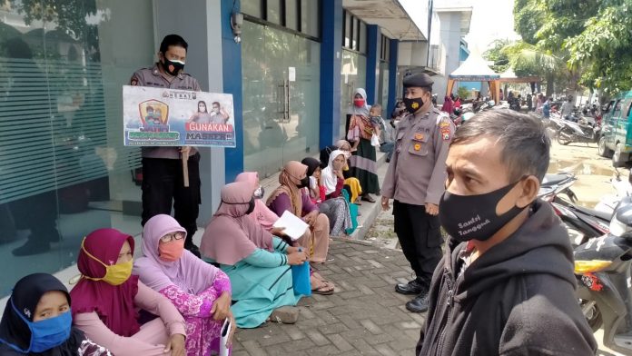 wacananews.com – PolresTubanJatim Polsek Bancar Polres Tuban berkesinambungan melaksanakan kegiatan Pendisiplinan Protokol Kesehatan Dengan menggiatkan Yustisi Sasaran tempat yang sering digunakan aktifitas kerumunan masyarakat seperti Perbankan, Perkantoran, Pasar Pertokoan, Cangkrukan dan tempat kerumunan lainya Dalam rangka penanggulangan Penyebaran Covid 19.