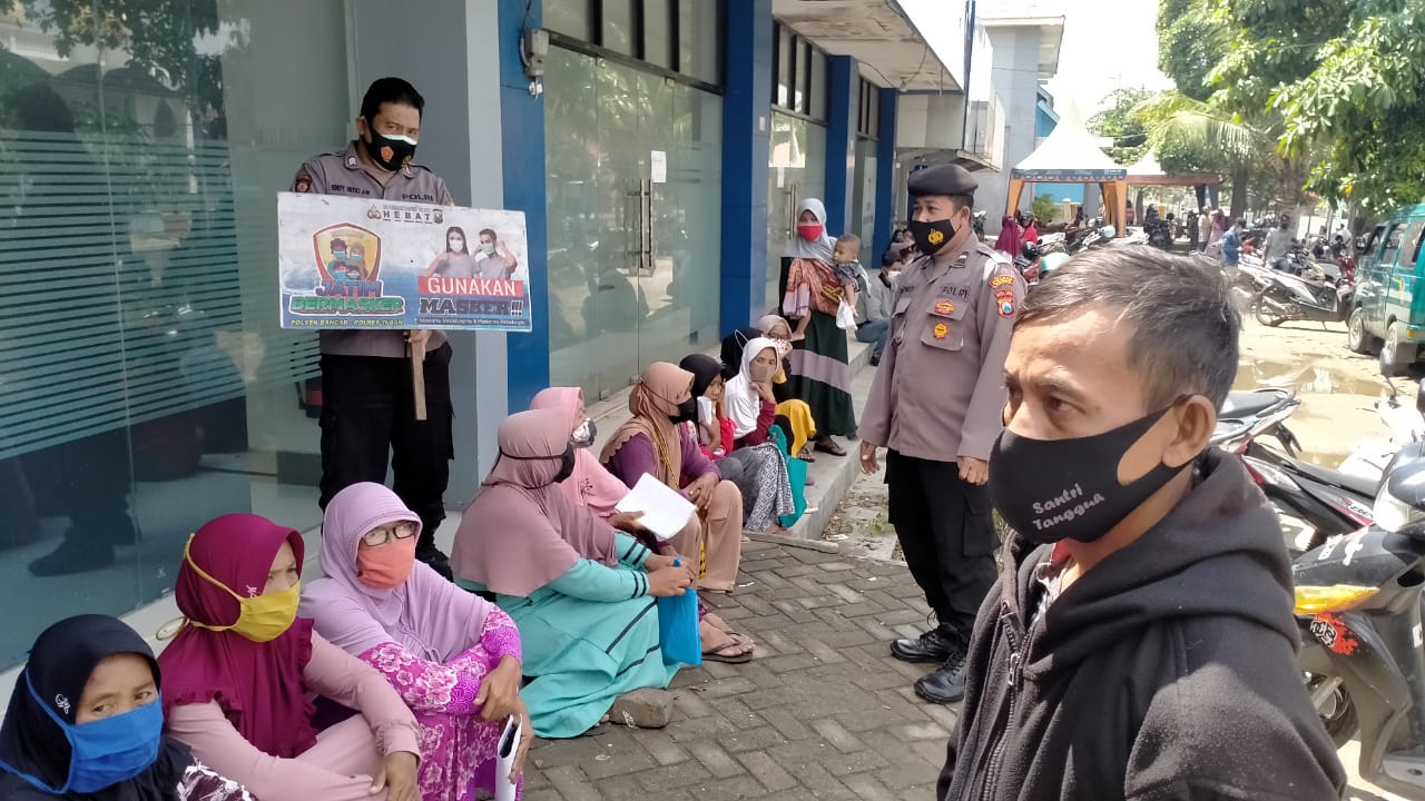 Pada kesempatan siang itu dilakukan oleh Polsek Bancar ditempat perbankan dengan sasaran para nasabah Bank BNI yang tidak mematuhi Protokol Kesehatan kemudian petugas memberikan teguran serta memberikan Masker kepada mereka.