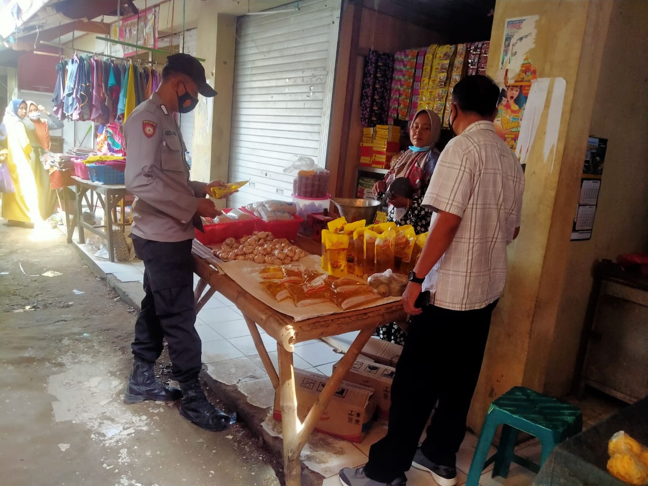 Disudut berbeda masih di pasar yang sama, 2 anggota Polsek Senori Polres Tuban Polda Jawa Timur, terlihat sedang berjalan kaki menyusuri lorong dan blok yang ada di dalam Pasar. Sesekali kedua anggota tersebut berhenti di depan toko dan lapak pedagang untuk berdialog dengan warga masyarakat.