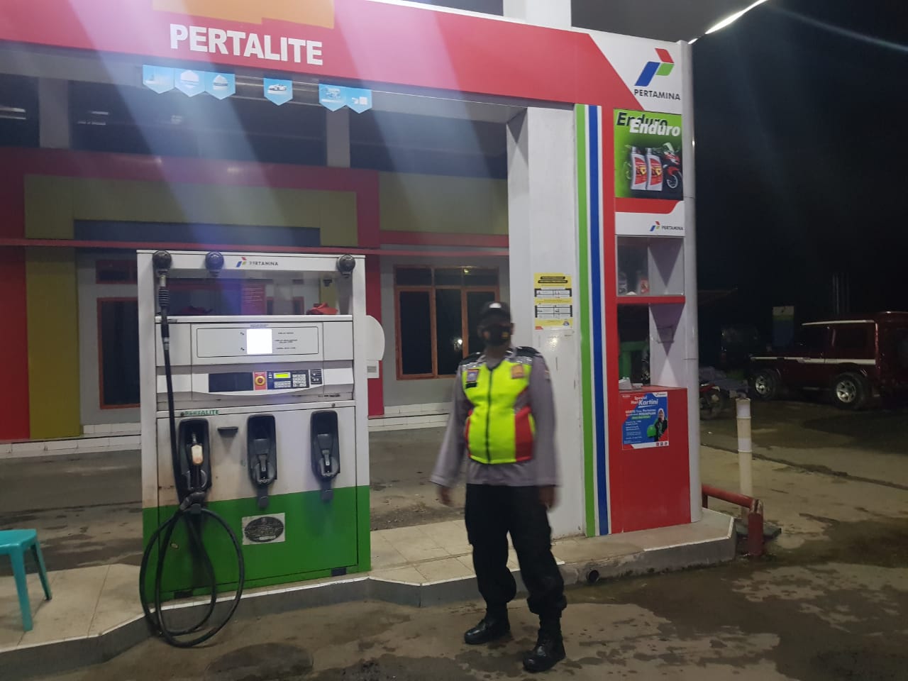Dalam kegiatan patroli tersebut petugas juga berdialogis petugas SPBU guna menyampaikan pesan kamtibmas untuk selalu waspada agar terhindar dari aksi kriminalitas.