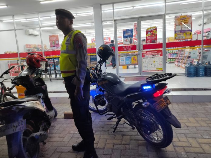 Senori – Dalam rangka memberikan rasa aman kepada warga masyarakat. Unit Samapta Polsek Senori Polres Tuban Polda Jatim melaksanakan patroli menggunakan sepeda motor yang Lampu Rotator Birunya menyala sehingga sangat kelihatan khas Motor Patroli Polisi, Minggu (12/10/2025) malam.