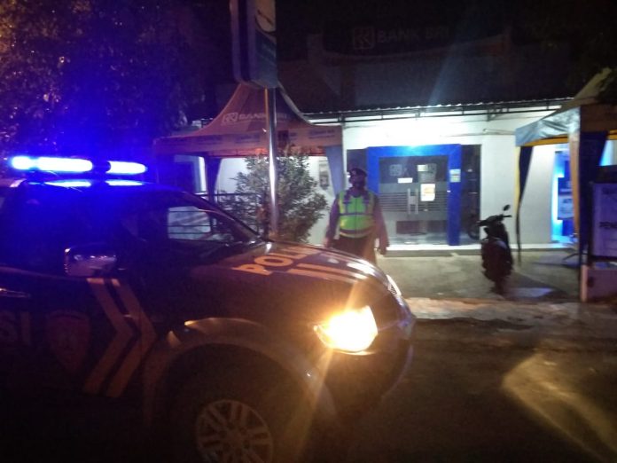 wacananews.com-polrestubanpoldajatim Ketika waktu sudah  menunjukkan datangnya dini hari, Dua personil Polsek Senori Polres Tuban Aipda Murdiantoro dan Bripka Nanang Eka melaksanakan patroli blue light untuk mengantisipasi terjadinya tindak pidana di ATM dan Perbankan, Senin (8/3/2021) malam.