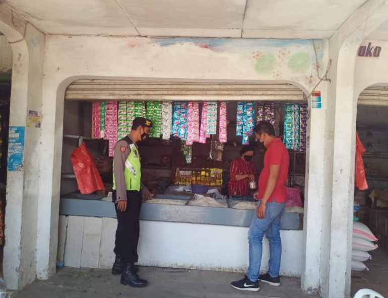 Regu patroli serta piket Reskrim berkomunikasi dengan para pedagang yg ada di pasar, supaya para pedagang tidak menaikkan harga secara drastis, walaupun pasokan barang berkurang agar daya beli masyarakat tidak berkurang di tengah masa pandemi seperti saat ini karna apa apa serba susah. Senin 05 April 2021.