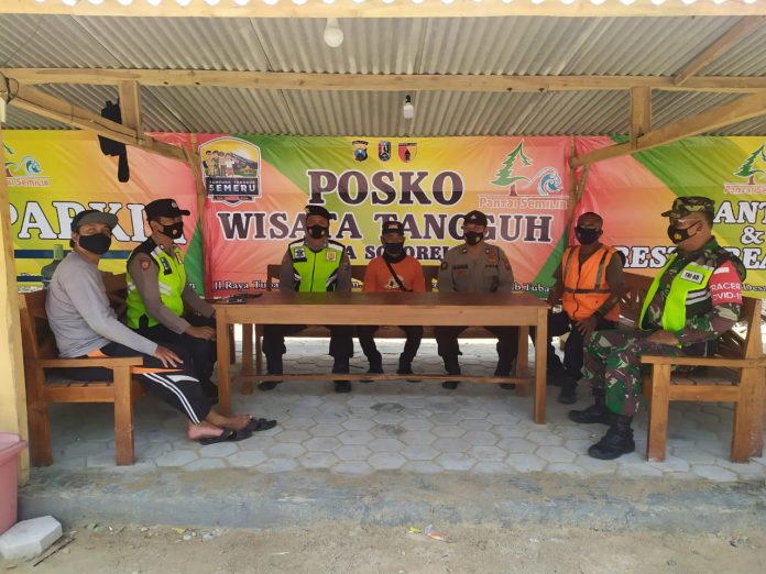 Sambang ke pos pantau pariwisata tangguh Semeru, juga menyempatkan untuk giat yustisi gabungan dengan rekan Koramil Jenu, menghimbau pengunjung tempat wisata serta mengajak agar selalu mentaati protokol kesehatan dalam keseharian baik di dalam lingkungan keluarga maupun saat berlibur seperti saat ini, menjahui kerumunan juga di wajibkan mengingat penyebaran virus covid 19 yang kian hari kian masih serta jumlah yang semakin bertambah. Pengunjung juga di harapkan peduli dan peka dengan situasi keamanan (penempatan barang bawaan dan anak anak yang bermain di laut) serta untuk selalu mentaati protokol kesehatan.