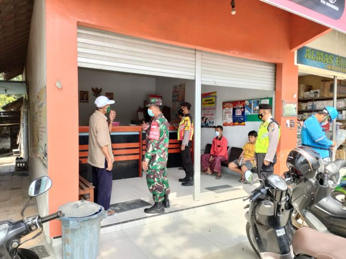 wacananews.com – PolresTubanJatim Anggota patroli polsek jenu polres Tuban melaksanakan Patroli sambang dan dialogis antisipasi 3C dan himbauan kepada petugas kantor pos Jenu tentang protokol kesehatan serta gerakan memakai masker.