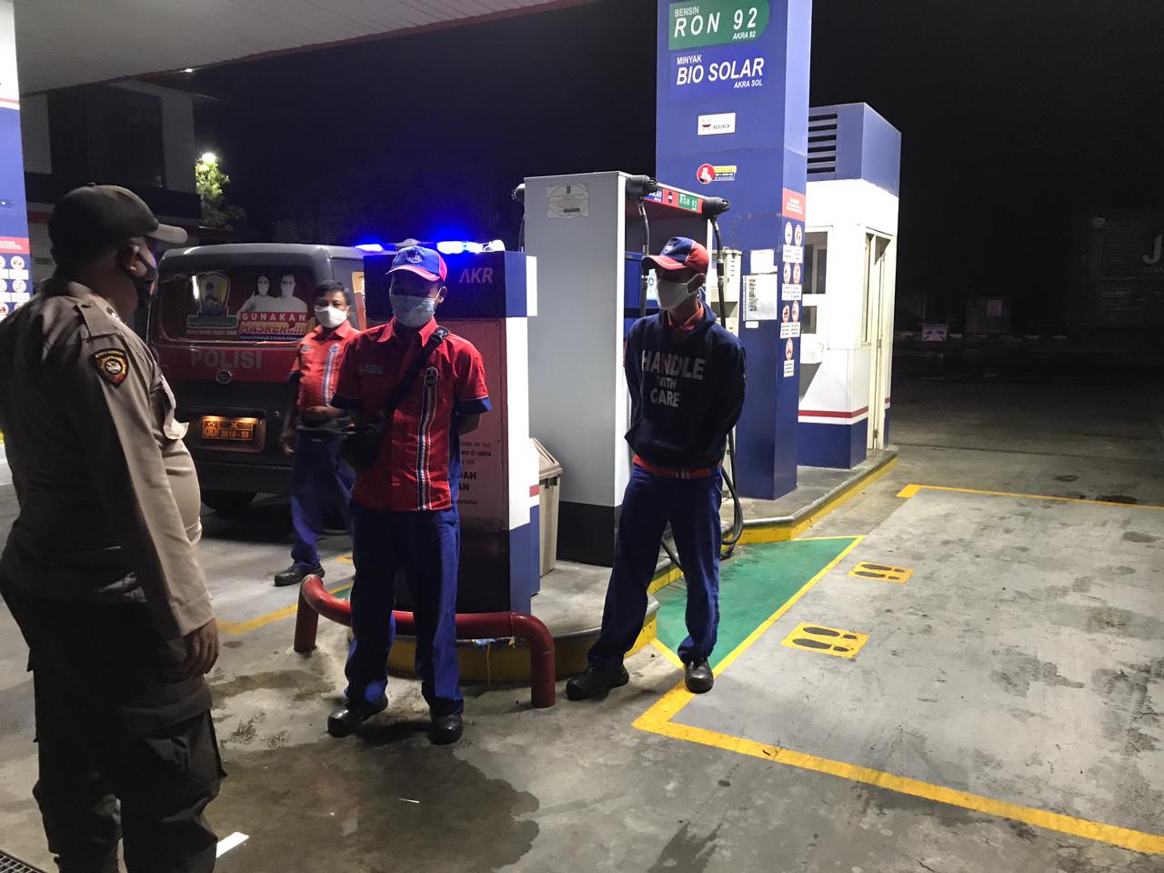 Saat berada di SPBU, Aiptu Erwin memberikan himbauhan Kamtibmas dan penerapan Prokes kepada Karyawan maupun masyarakat yang sedang membeli BBM.