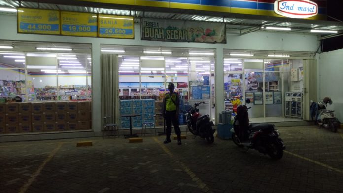 wacananews.com-polrestubanpoldajatim Untuk mengantisipasi terjadinya kriminalitas diwilayahnya, Anggota Polsek Singgahan Polres Tuban melaksanakan patroli di pertokoan minimarket/Indomart yang terletak di Desa Mulyoagung Kecamatan Singgahan kabupaten Tuban. Kamis malam (18/3/21).