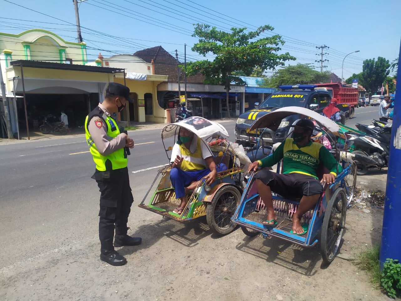 wacananews.com-polrestubanpoldajatim Anggota Polsek jenu polres Tuban melaksanakan himbuan Kamtibmas kepada Abang becak di sekitaran pasar samudra Beji,Jenu. Mengingatkan kembali untuk tidak memarkir becaknya di tepi jalan raya, demi kebaikan bersama lalu lintas bisa lancar serta pengguna jalan kaki juga bisa memiliki haknya.