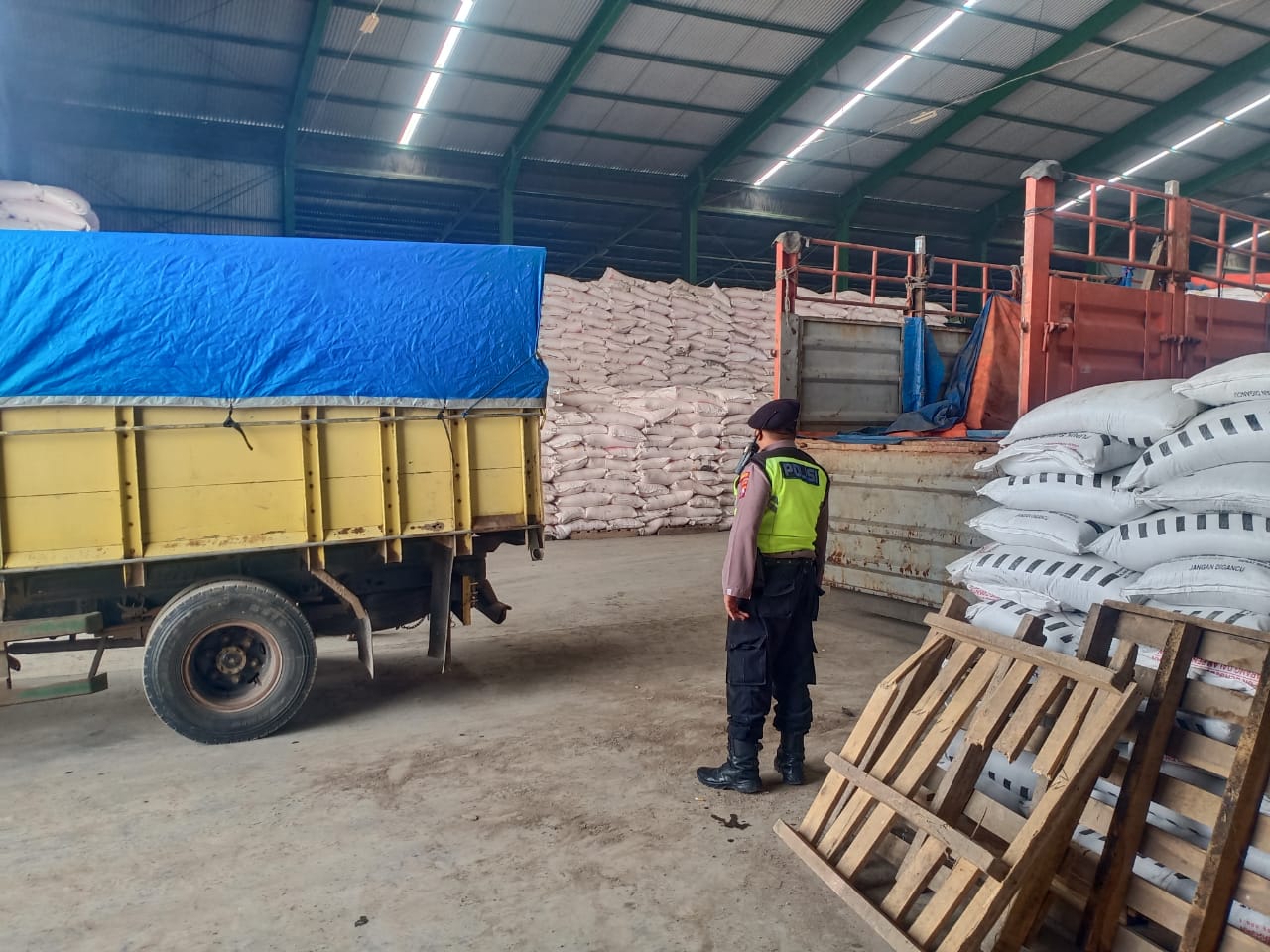 Terlihat saat patroli pagi yang dipimpin oleh KSPKT Aiptu Chambali dan anggota Polsek Jenu kontrol di gudang pupuk Pusri.