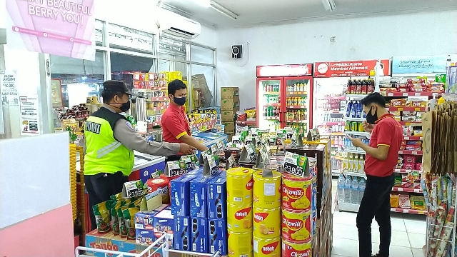 Dalam suasana penuh kemitraan Aiptu Kusnadi melakukan obrolan dengan karyawan Alfamart sampaikan mengenai protokol kesehatan sesuai anjuran pemerintah sekaligus di lingkungan Alfamart di tengah pandemi covid19, tidak lupa pada saat berdialogis petugas menyampaikan agar semua karyawan Alfamart untuk ikut serta menjaga kebersihan lingkungan, memakai masker dan menyediakan sarana cuci tangan di depan minimarket Alfamart.