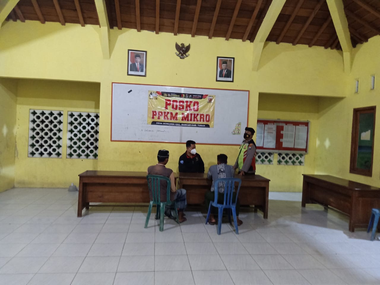 wacananews.com-polrestubanpoldajatim Polsek Bancar Polres Tuban dalam menjaga hubungan yang harmonis dan Komunikasi yang aktif  dengan pemerintahan desa salah satu caranya yaitu sering melakukan kegiatan Sambang Desa.Pada kesempatan malam itu dilakukan oleh anggota Polsek Bancar., Melaksanakan kegiatan Sambang Desa di Ds Bancar dengan menitipkan pesan Kamtibmas terkait pembentukan Posko PPKM ( Pemberlakuan Pembatasan Kegiatan Masyarakat ) berkolaborasi dengan Tiga Pilar Desa dalam rangka penanggulangan Covid 19.