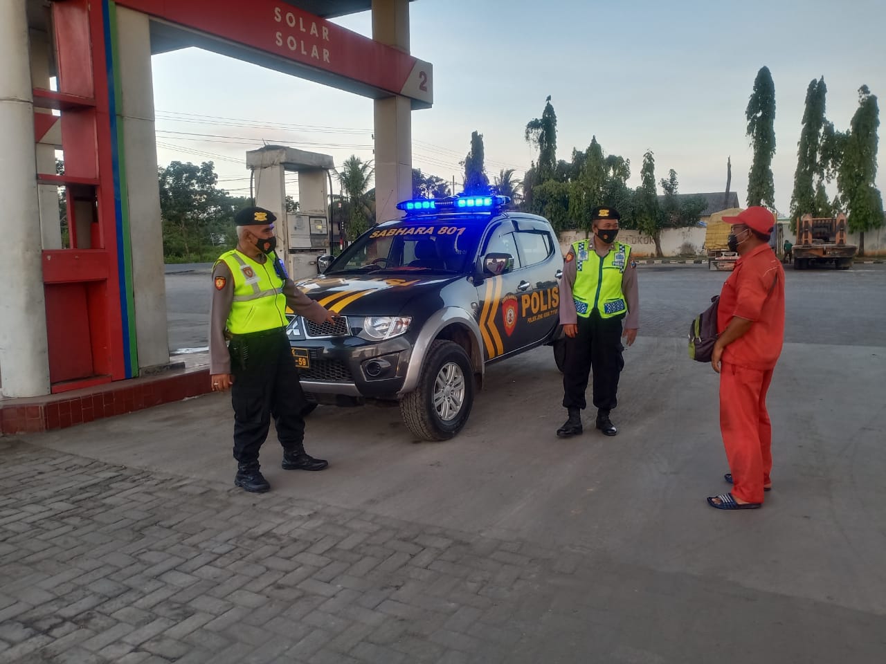 menggunakan mobil 801 patroli sabhara melaksanakan Patroli di SPBU yang