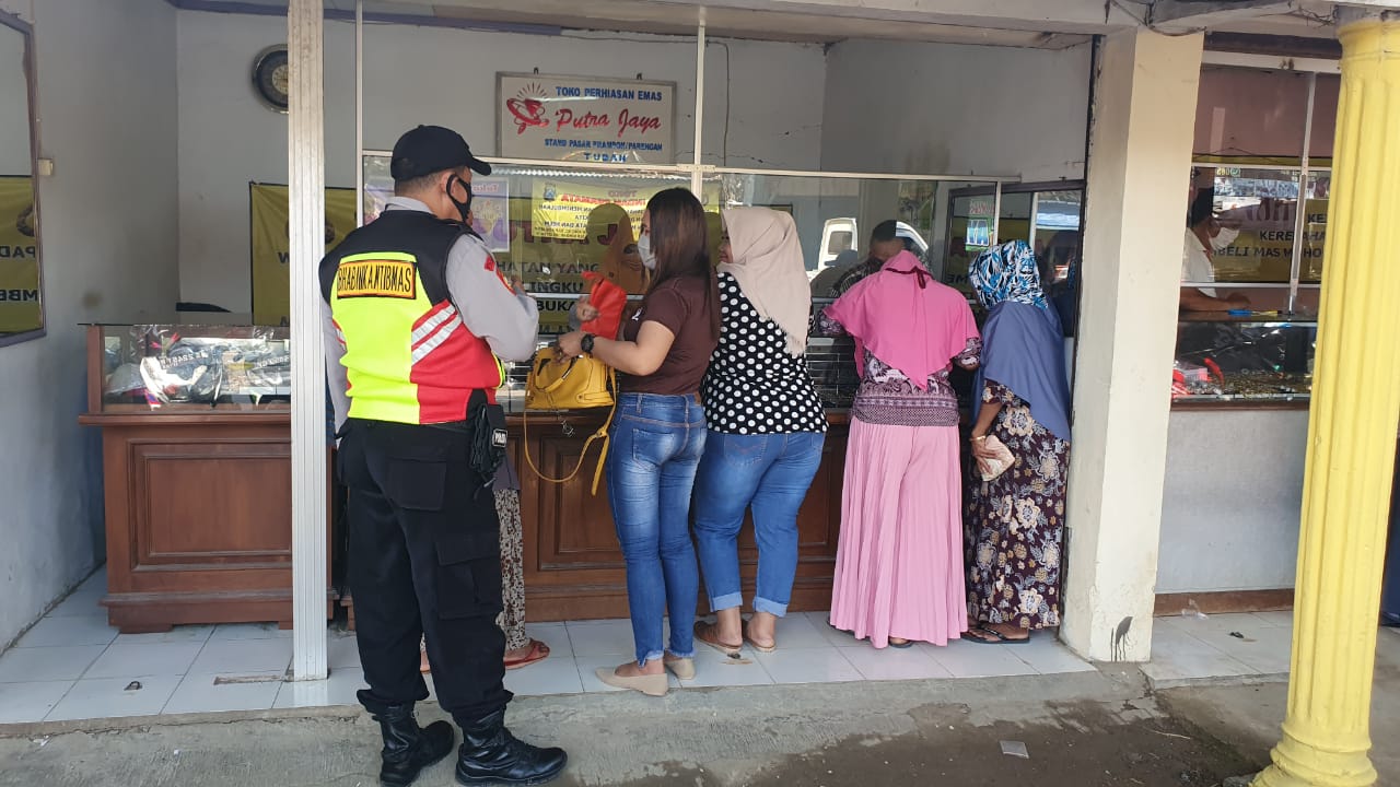 wacananews.com – PolresTubanJatim Demi mencegah terjadinya tindak kriminalitas serta untuk memberi rasa aman kepada pemilik maupun kepada pembeli ,Polsek Soko polres Tuban melaksanakan patroli di toko emas di Pasar Prambon Kecamatan Soko, Rabu, 21/04Selain berpatroli petugas memberikan pesan kamtibmas serta dialogis dengan pemilik toko emas agar selalu waspada dan berhati hati saat melayani pembeli,selain rawan perampokan toko emas juga rawan tindak kejahatan lainnya seperti uang palsu,emas palsu yang pernah terjadi sebelumnya,kepada pembeli petugas mengingatkan agar tidak memakai perhiasan yang mencolok di tempat umum.