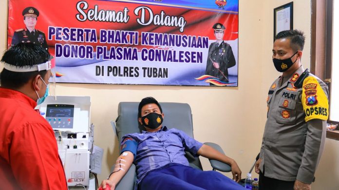Kegiatan donor Plasma tersebut mendapat perhatian serius dari Kapolres Tuban AKBP Ruruh Wicaksono, S.I.K., S.H., M.H., didampingi Paurkes Polres Tuban AIPTU Widodo melakukan pemantauan jalannya donor plasma convalesen di Kantor Palang Merah Indonesia (PMI) jln. Pramuka No. 2 Tuban.