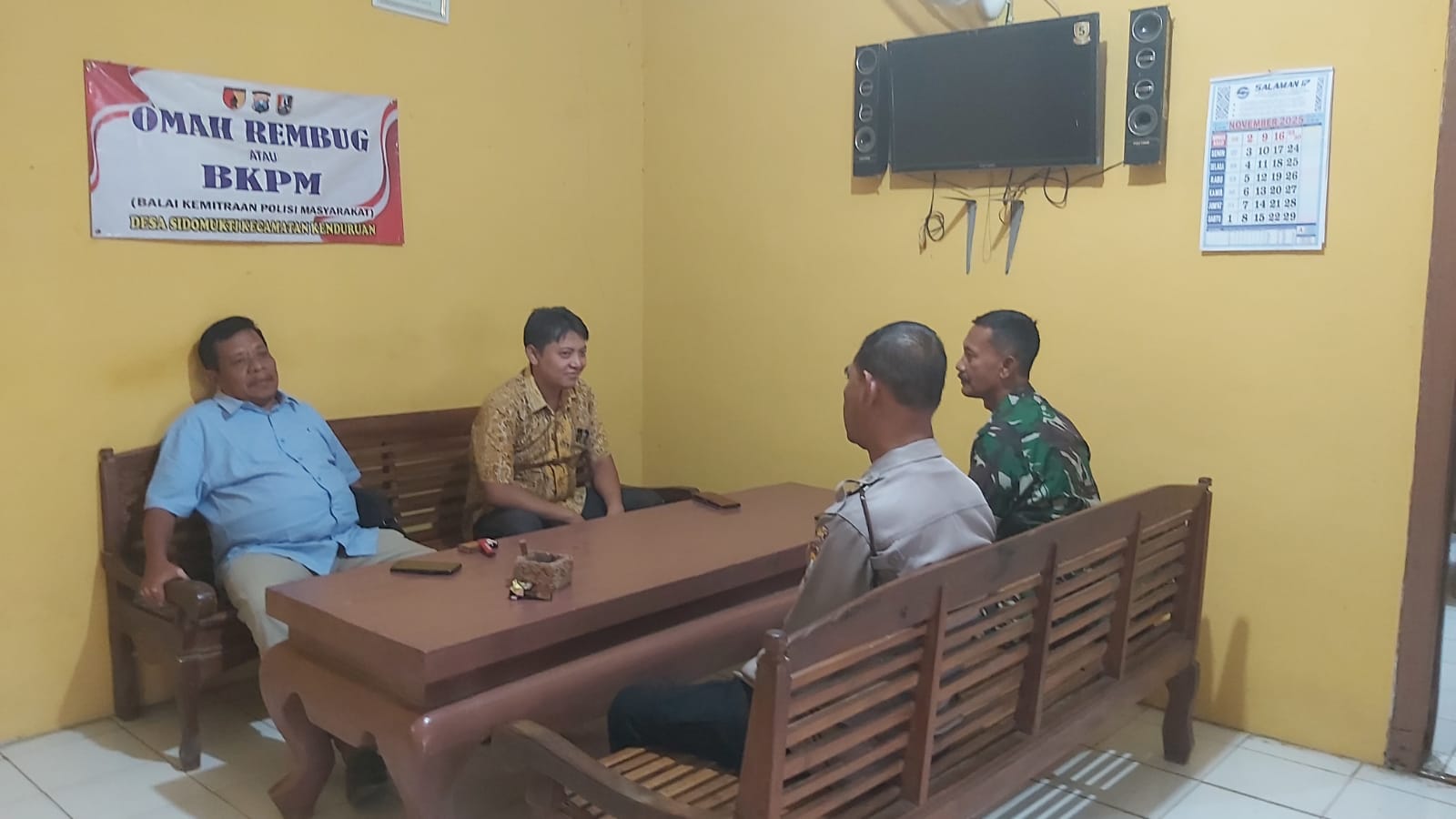 Tidak terkecuali di Desa Sidomukti, Kec. Kenduruan, Kab. Tuban, pada Kamis (06/11/2025), AIPTU Poniman Ka. SPKT Polsek Kenduruan sekaligus petugas Polmas Desa Sidomukti bersama Tiga pilar desa Sidomukti, antara lain Kepala Desa Sidomukti, H. Slamet, Babinsa Desa Sidomukti, SERKA Supratman duduk bersama mengadakan koordinasi saling bertukar pendapat dan pikiran di Omah Rembug. Dengan begini tujuan Omah Rembug untuk membahas kegiatan masyarakat atau penyelasaian masalah warga dengan cara kekeluargaan.