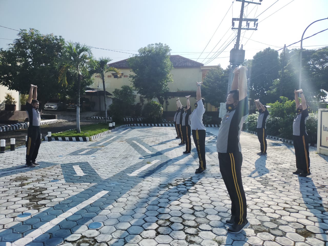 Pada pagi itu, anggota Polsek Rengel melaksanakan olahraga senam peregangan dan penguatan di halaman Mapolsek Rengel.