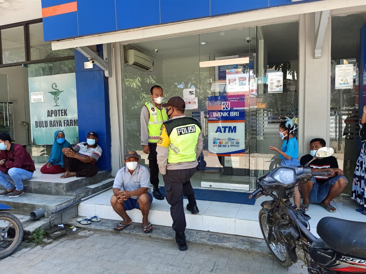 Kemudian petugas juga memberikan himbauan kepada para nasabah Bank yang sedang antri bergantian untuk mengambil uang supaya tetap menjalankan Protokol Kesehatan guna mengantisipasi Penyebaran Covid-19.
