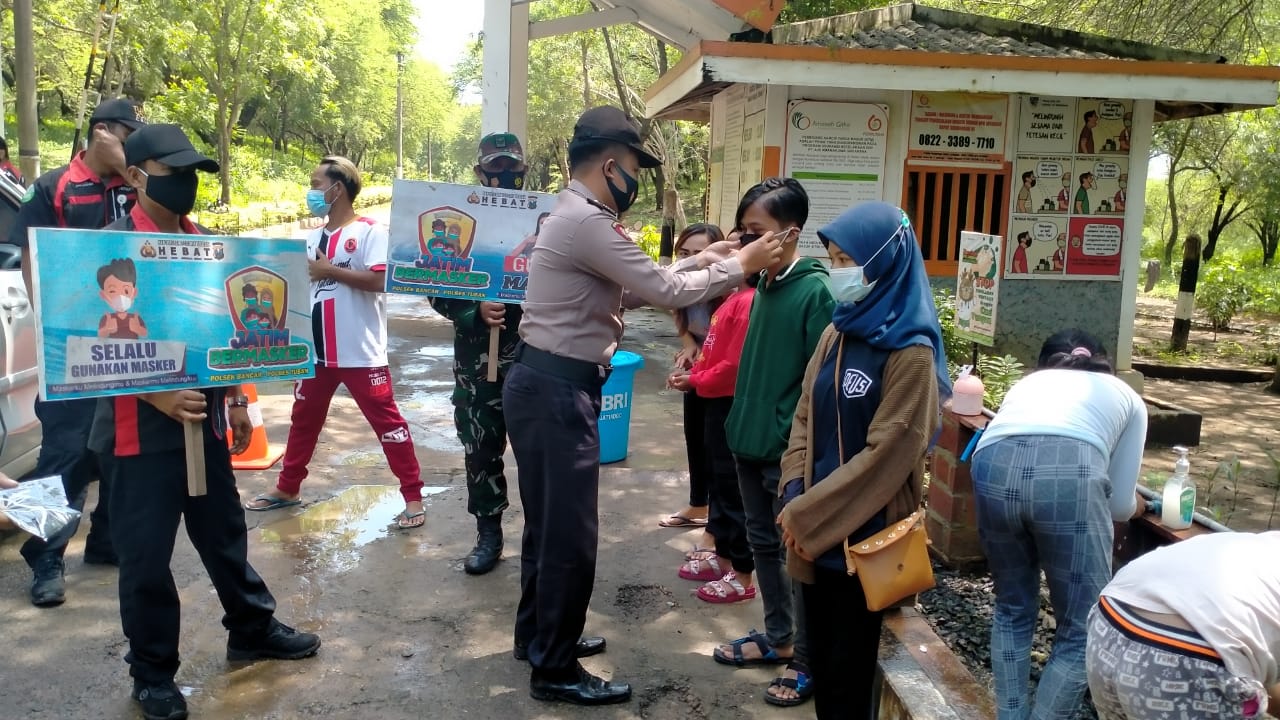wacananews.com – PolresTubanPoldaJatim Polsek Bancar Polres Tuban bersama anggota Koramil Bancar dan sat Pol PP kecamatan Melaksanakan kegiatan Yustisi berdasarkan Inpres no 6 Tahun 2020 tentang kepatuhan Protokol Kesehatan dengan sasaran masyarakat yang tidak memakai masker. Senin 08 Februari 2021.