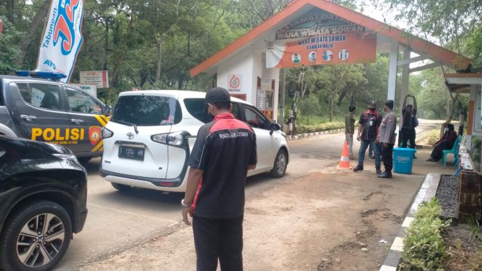 Dalam giatnya petugas patroli selain membantu petugas jaga diloket karcis, petugas juga berikan Himbuan pengunjung agar mentaati tata tertib pada saat berada dilokasi Tempat wisata, apalagi kita masih ditengah tengah Pandemi Covid diharuskan pengunjung wisata Mematuhi Protokol Kesehatan harus memakai masker, sebelum masuk untuk mencuci tangan ditempat yang sudah disiapkan, menjaga jarak serta mengurangi aktifitas berkerumun