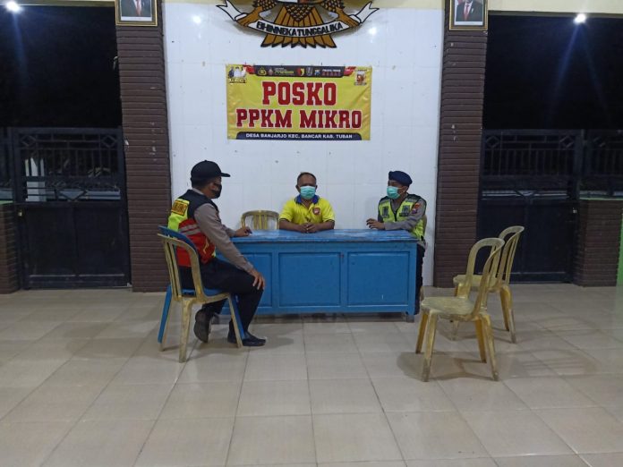 wacananews.com – Polsek Bancar Polres Tuban dalam menjaga hubungan yang harmonis dan Komunikasi yang aktif  dengan pemerintahan desa salah satu caranya yaitu sering melakukan kegiatan Sambang Desa. 01 April 2021.Pada kesempatan malam itu dilakukan oleh anggota Polsek Bancar., Melaksanakan kegiatan Sambang Posko PPKM Mikro di Ds Banjarjo dengan menitipkan pesan Kamtibmas terkait pembentukan Posko PPKM ( Pemberlakuan Pembatasan Kegiatan Masyarakat ) berkolaborasi dengan Tiga Pilar Desa untuk selalu mengingatkan  warganya Supaya selalu mematuhi Protokol Kesehatan dalam rangka penanggulangan Covid 19.